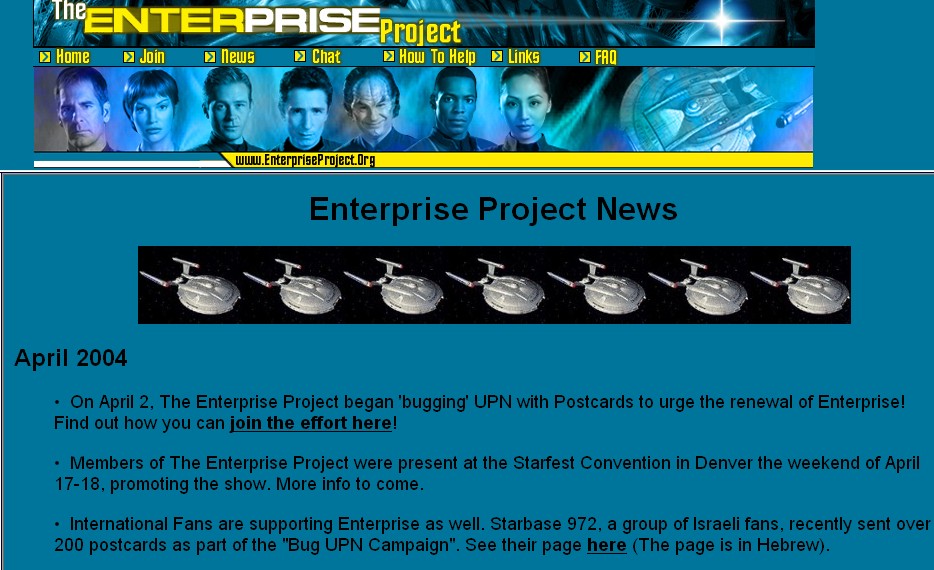 – אתרים בחו"ל משבחים את מאמצינו בארץ להציל את אנטרפרייז ומזדהים!
