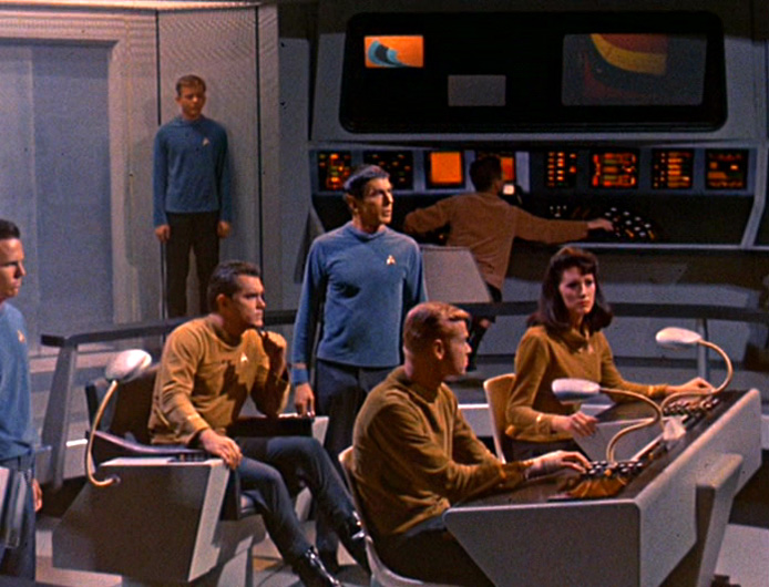 איור של צוות The Cage שכולל בין השאר את ספוק ואת "מספר אחת", סגנית הקפטן. נלקח מכאן.