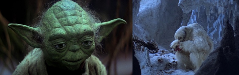 האפקטים בסרט קצת יותר מרשימים מבסרט הקודם, אבל בכל זאת מיושנים. כשמדובר ברקעי CGI זה לא כל כך נורא ואפשר לסלוח לסרט, הוא בכל זאת די ישן ואולי בזמנו זה היה מרשים. הדמויות הלא-אנושיות בולטות במיוחד: הטונטונים זזים בצורה לא אמינה אבל זה לא מאד מפריע ודווקא יטי אוכל-האדם (עדיין לא מאמינה שאני כותבת את זה) נראה די בסדר. אבל האהבה הזו לבובות מתחילה לעצבן כשהיא מגיעה לדמויות ראשיות. יודה פשוט לא נראה חי בשום צורה. טווח ההבעה שלו מצטמצם לפתיחה וסגירה של העיניים, אף תנועה שלו לא נראית טבעית וקשה מאד לקבל אותו כדמות ממש. אני לא יודעת איך נראות דמויות ה-CGI בפריקוולים אז אני לא יודעת על מה התרעומת, אבל אני מקווה שב"פרק 7, הכוח מתעורר" לא ינסו לרצות את המעריצים על ידי חזרה לשימוש בבובות המגושמות.