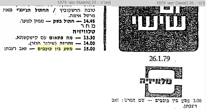 בתחילת ינואר 79' נכתב על "משאל פרטי" ממנו משתמע ש"מסע בין כוכבים" היתה במקום השני ברשימת התכניות האהובות על הילדים.