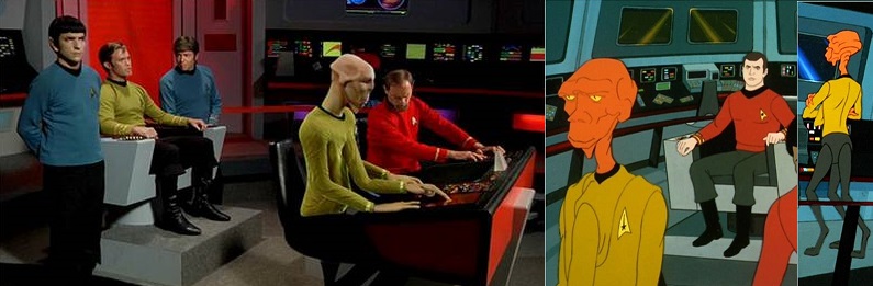 אך גם הגיוון החייזרי חשוב ל"צבע" שהסדרה משדרת. יצאנו לבדוק ושמנו לב שאחוז החייזרים או ה"אחרים" (אנדרואידים וכו') מבין דמויות הקאסט הראשי עלה עם השנים. ב"מסע בין כוכבים" המקורית היה רק ספוק (חצי חייזר מתוך שבעה חברי צוות), ב"הדור הבא" היו וורף, דאטה וחצי-טרוי (2.5/8), ב"חלל עמוק תשע" היו קירק, דאקס, קוורק ואודו (4/8) וכשוורף הצטרף זה עלה ליותר מ-50% (5/9)! ב"וויאג'ר" נשארנו עם אחוז מצוין, כשהיו טובוק, הדוקטור, ניליקס, קס/סבן וב'אלנה (4.5/9). ב"אנטרפרייז" חווינו דעיכה כשרק ט'פול ופלוקס היו על הסיפון (2/7), אבל אפשר להסביר את זה איכשהו עלילתית כיוון שלבני האדם צריכות להיות סיבות טובות לצרף חייזרים לספינה.