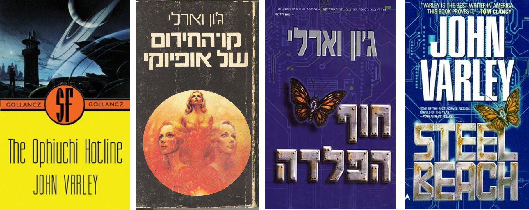 שני ספרים של ג'ון וארלי, שעלילתם מתרחשת בערך באותו עולם, אבל פורסמו בהפרש של כחמש-עשרה שנים אחד מהשני: "קו החירום של אופיוקי" שפורסם בשנת 1977, והשני הוא "חוף הפלדה" מ-1993,