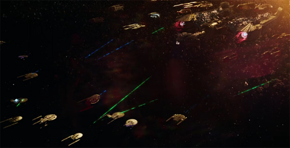 כשלורקה ואנשיו נלחמים נגד הקיסרית וחייליה, קרב זה מנוהל מתוך סצנה שלא היתה יכולה להתקיים באף סדרה אחרת של "מסע בין כוכבים". ייצוגה של האלימות ב"דיסקברי", גם הוא ריאליסטי יותר. בסדרות הקודמות, קרבות בין בני אדם וחייזרים ובין ספינות חלל שונות נראו מעט מומחזים. התנועות הכלליות היו מינימליות והיריות האיטיות-כאילו נבעו מתוך כללי נימוס הקובעים שעל כל צד לחכות לתורו של היריב לפעול, בטרם יירה שוב. ב"דיסקברי" אנו רואים קרבות בין ספינות ובין בני אדם, בהם אנחנו בקושי מצליחים לעקוב אחר התנועות המהירות, כשבקרב עשוי לשלוט כאוס מוחלט.