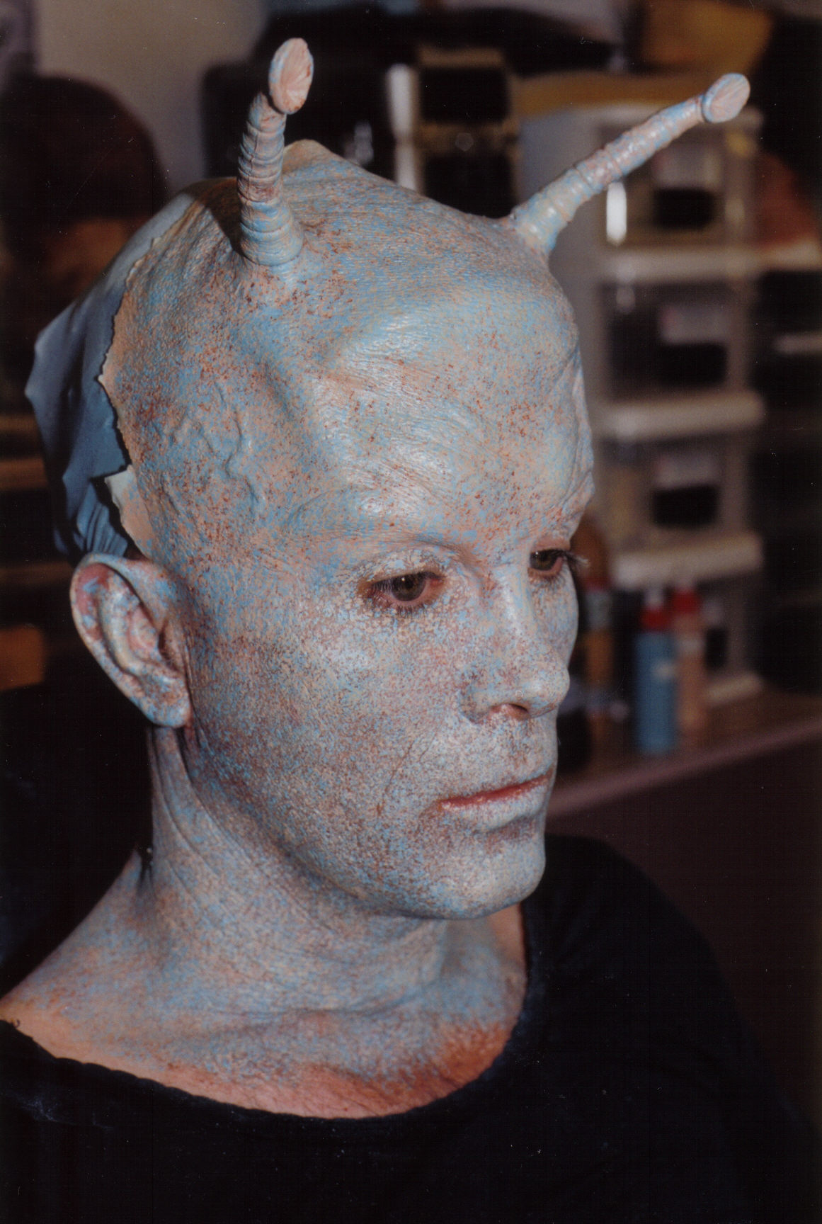 me, I was given the honor to do the lead Andorian, Jeffrey Combs and to write the paint instructions for other makeup artists to follow when we had other background and secondary characters. Mr. Combs required special attention as he would have a lot of close up shots on him and he needed a more finessed prosthetic application and paint job."