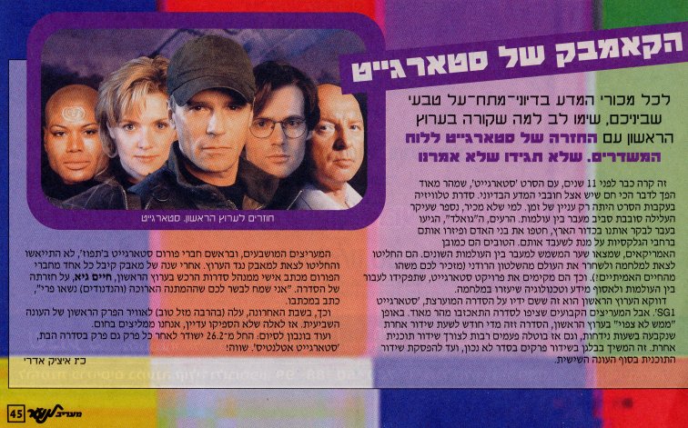 30/11/1999 סטארגייט חוזרת לטלוויזיה [מתוך: עיתון ידיעות אחרונות]