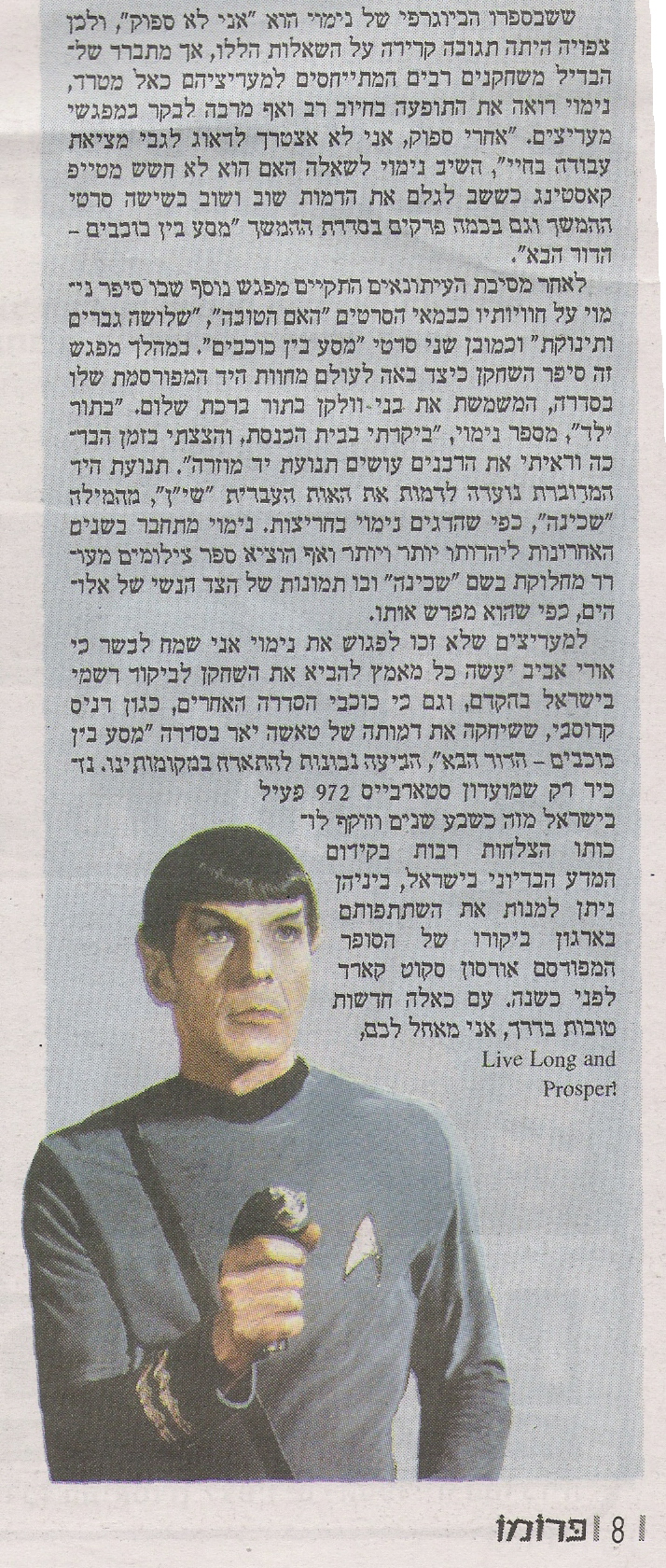 04/06/2005 על ביקורו של לאונרד נימוי בארץ [מתוך: אתרTrekToday]