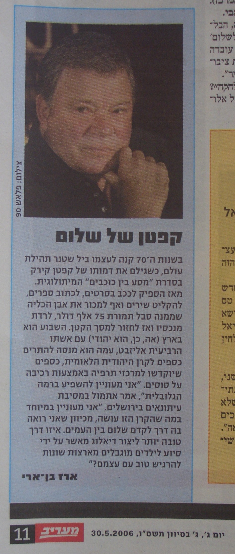 27/05/2006 על ביקורו של וויליאם שאטנר בארץ [מתוך: ידיעות אחרונות]